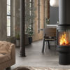 Rocal Vesta Central wood burner that can stands like a supporting pillar in the centre of a room and command everyone’s attention, creating a cosy and inviting atmosphere.