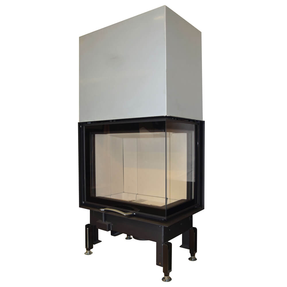 Introducing the Austroflamm 63x40x51 S Corner Fireplace, a stunning wood-burning built-in fireplace designed to be the focal point of any modern living space. This model features a sophisticated vertical lift-up door for seamless access, while the corner glass showcases the fire from multiple angles, creating a captivating visual experience. Available with left- or right-hand corner glass orientation, this fireplace offers flexible placement to suit your room layout.