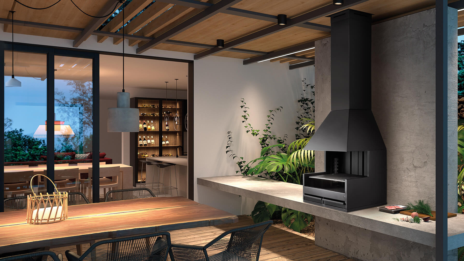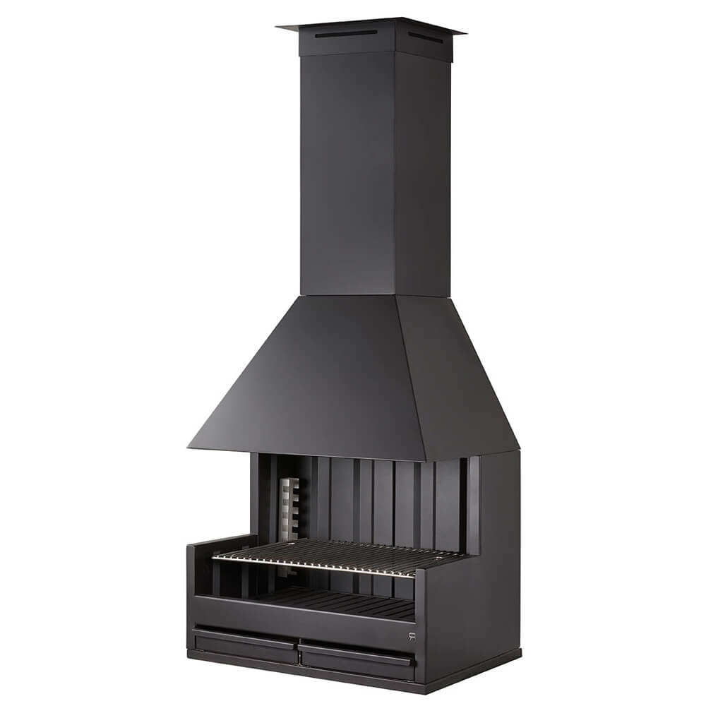 The Palma 75 BBQ is available in two versions: one designed for external use, complete with a length of pipe and rain cowl, and one intended for use under a roof structure. The latter version comes with decorative flue casing that can be customised to fit your needs, as well as a matching ceiling crest that can be made to measure. To use this version of the BBQ, you will need to run a 250mm diameter pipe inside the flue casing.