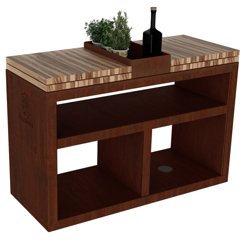 The Master Butcher Block offers expanded workspace and storage for serious outdoor chefs. It pairs seamlessly with Vulcanus grills to create a complete outdoor kitchen experience.