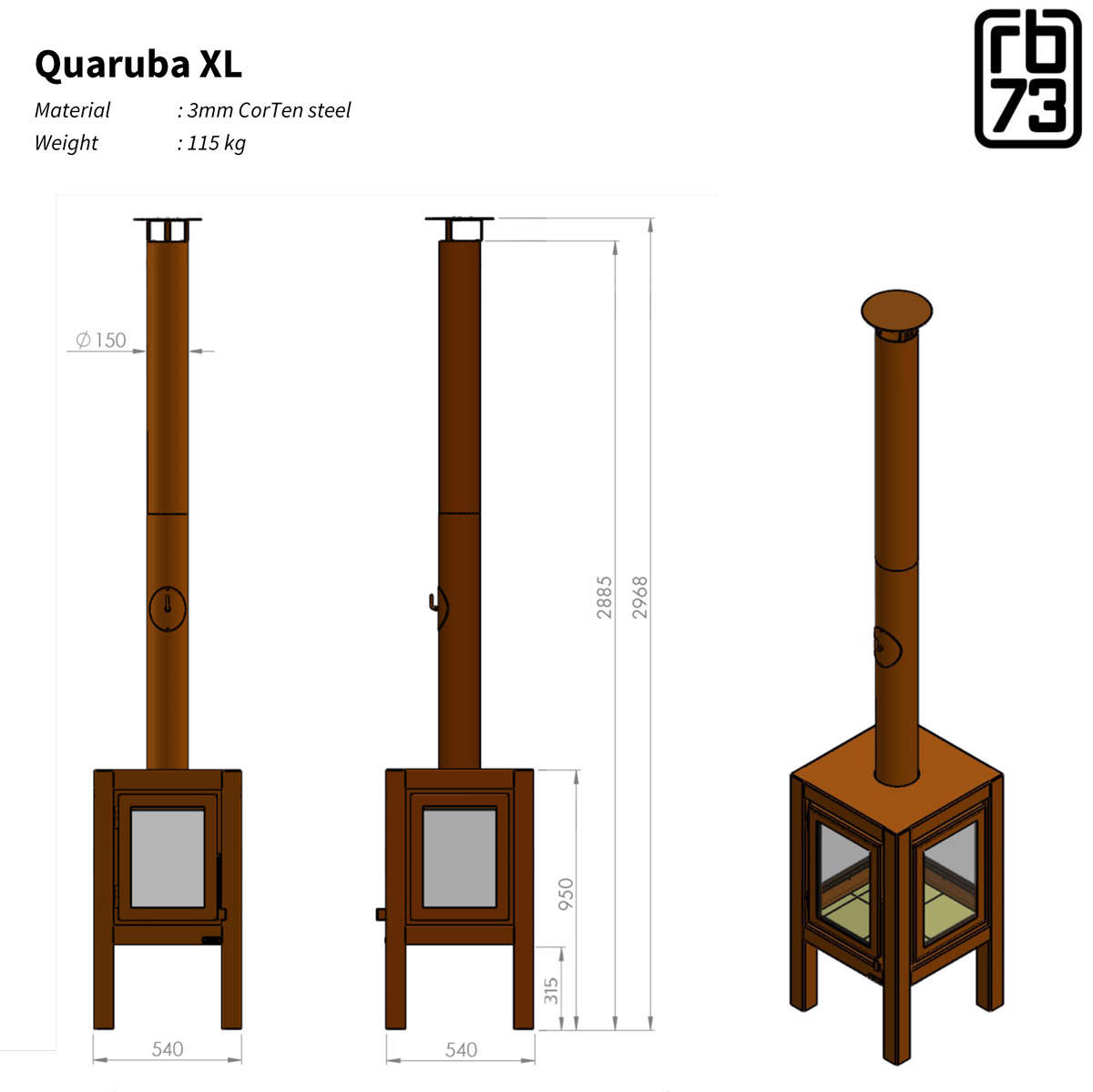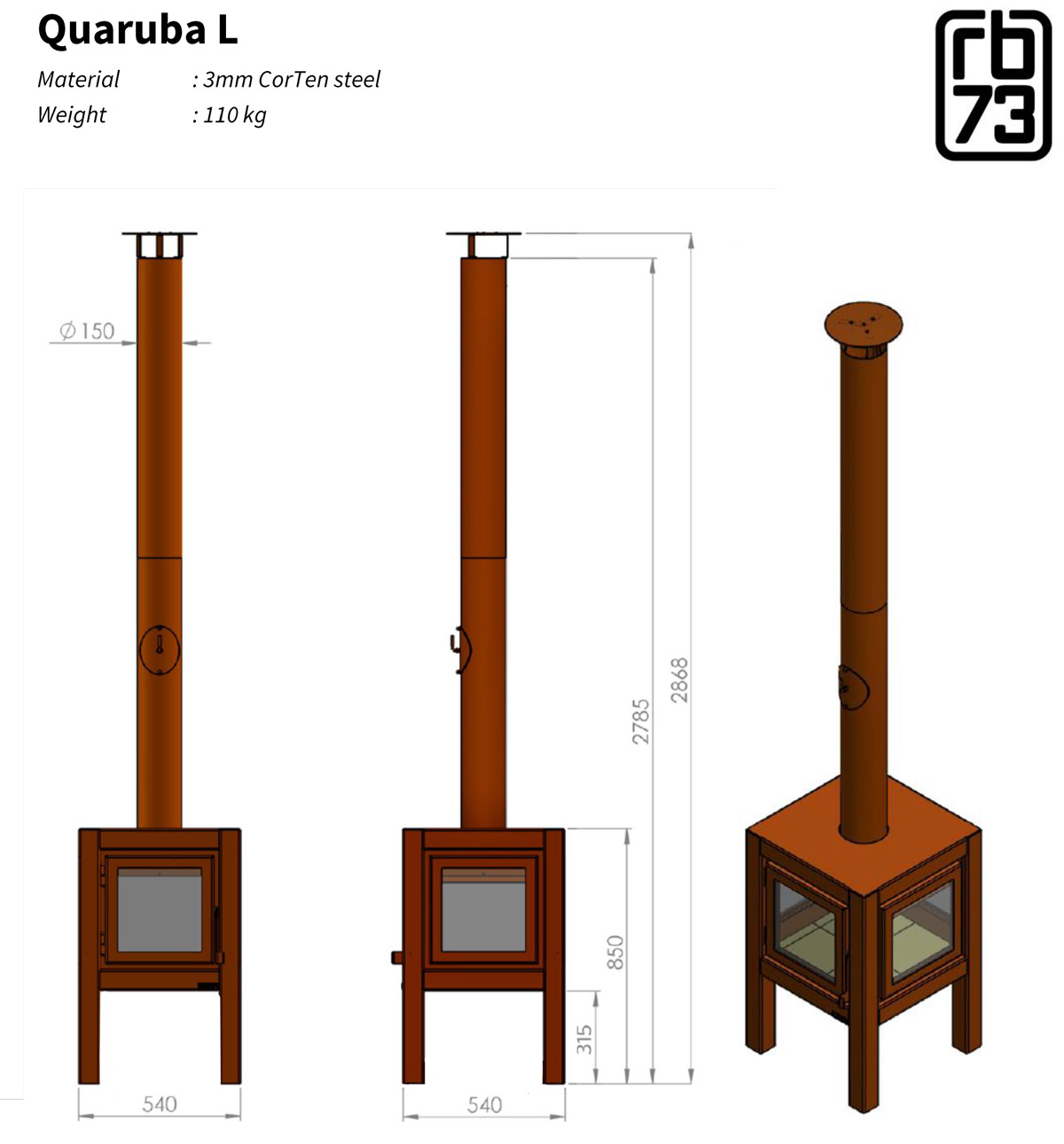 All RB73 fires are built by RENY a team of passionate wood-burning professionals based in The Netherlands. All models are designed, developed and produced entirely in-house so that the highest quality and service can be delivered.