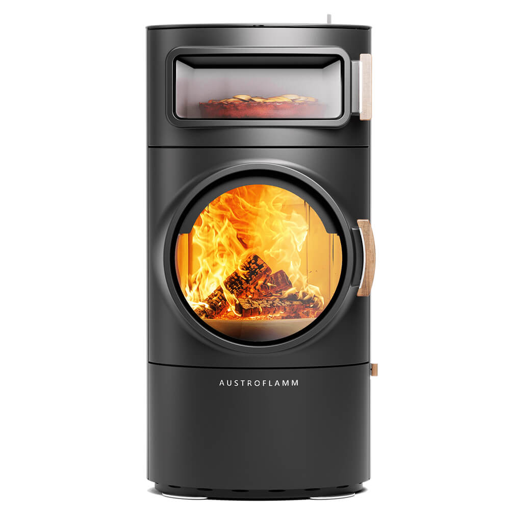 The Austroflamm Clou Xtra Back is a stylish wood-burning stove with a baking oven, offering efficient heating, cooking versatility, and long-lasting warmth.
