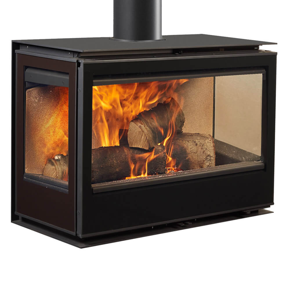 The Rocal Habit 73 TC is available as a hearth mounted stove as standard and can be installed with an optional logstore, or choice of stove bench.