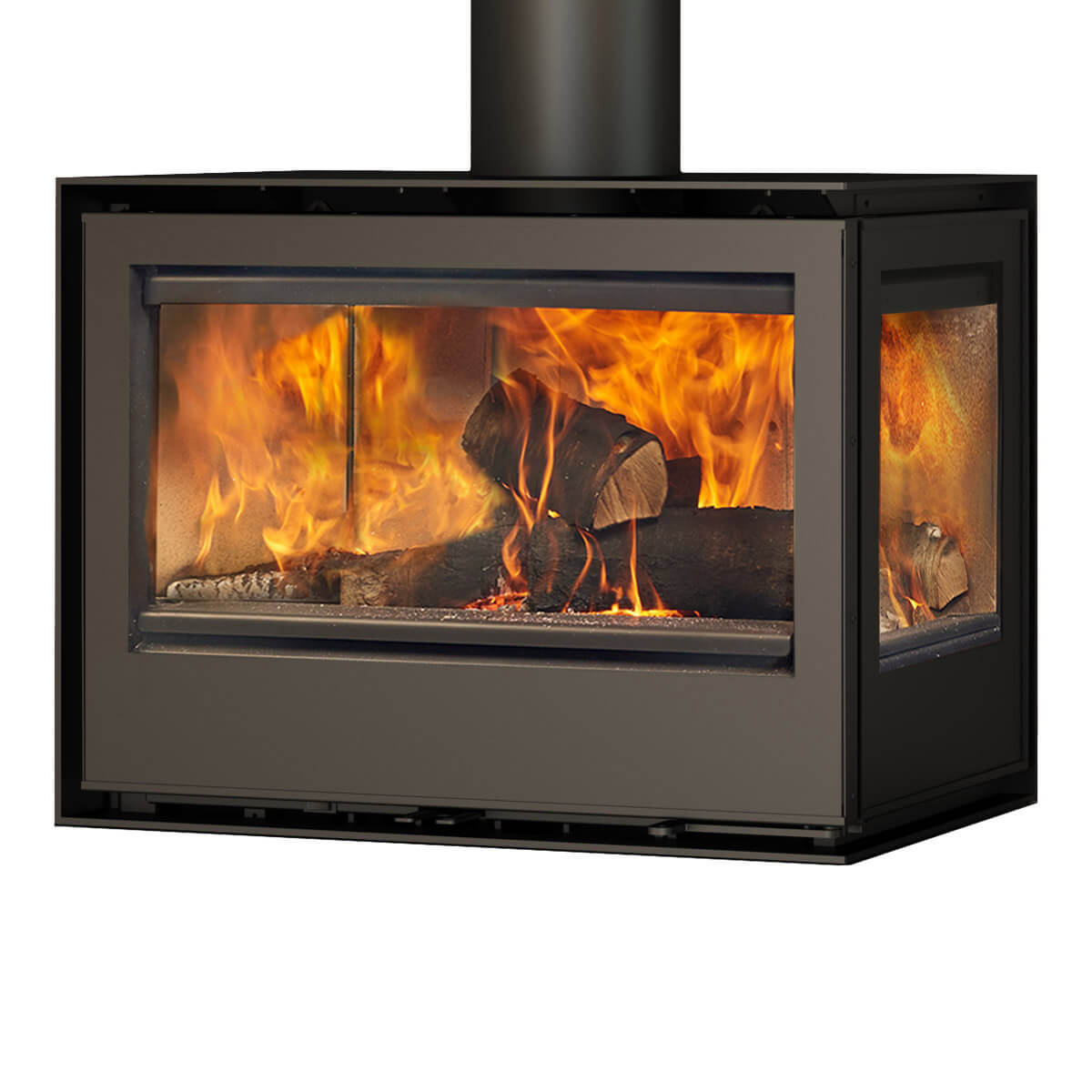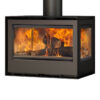 The Rocal Habit 76 LI (Left Glass) or 76 LD (Right Glass) is available as a hearth mounted stove as standard and can be installed with an optional logstore, or choice of stove bench.