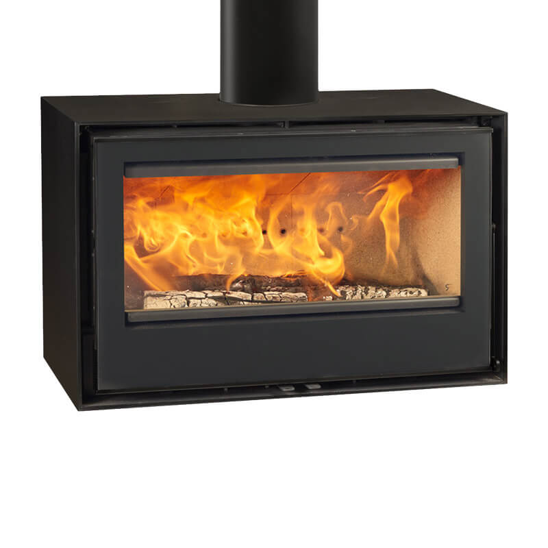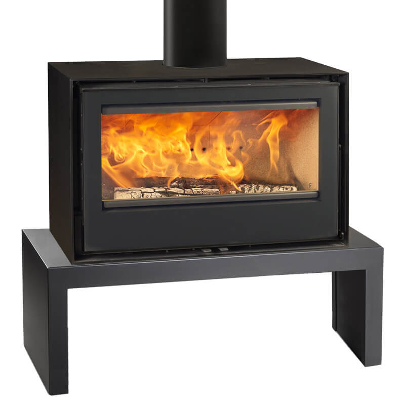 The Rocal Habit 80 is available as a hearth mounted stove as standard and can be installed with an optional logstore, or choice of stove bench.